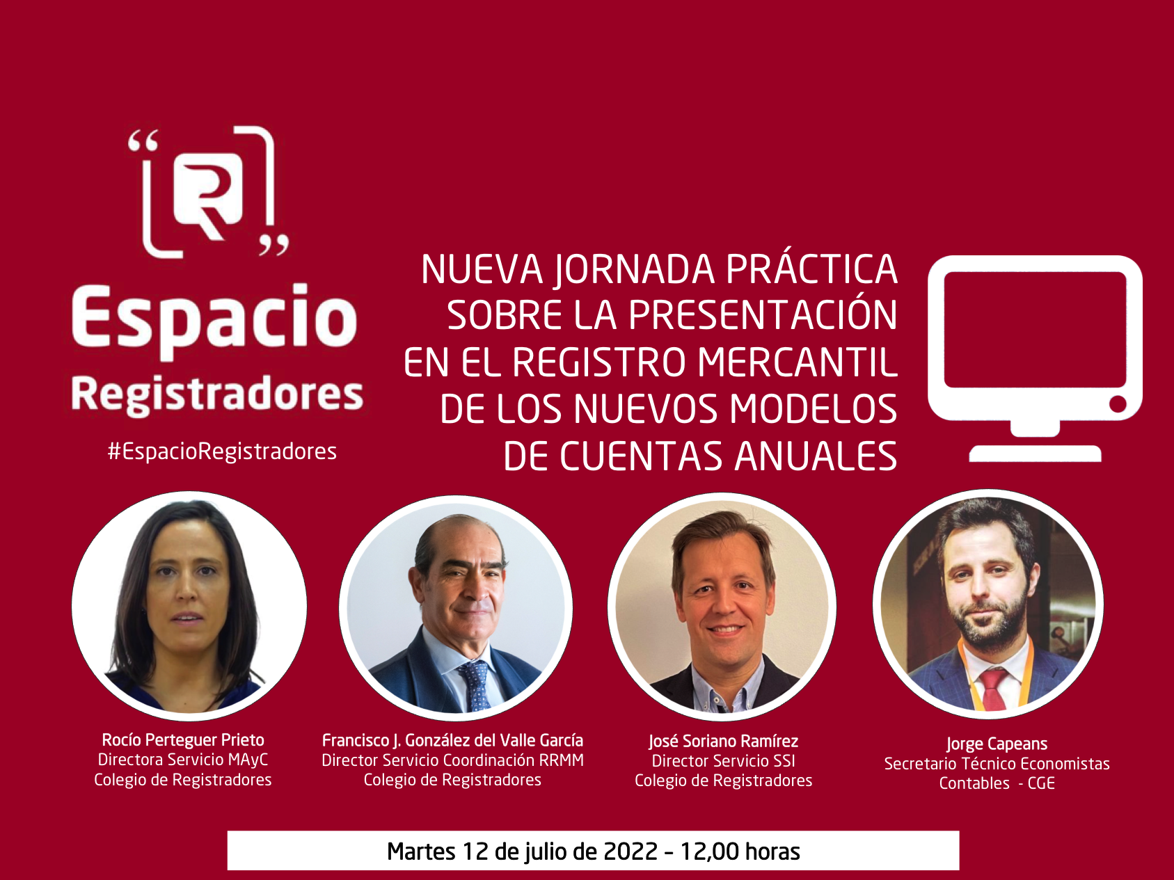 El próximo martes 12 de julio tenemos un nuevo encuentro en Espacio Registradores, para dar a conocer los nuevos modelos de presentación de cuentas anuales en el Registro Mercantil.