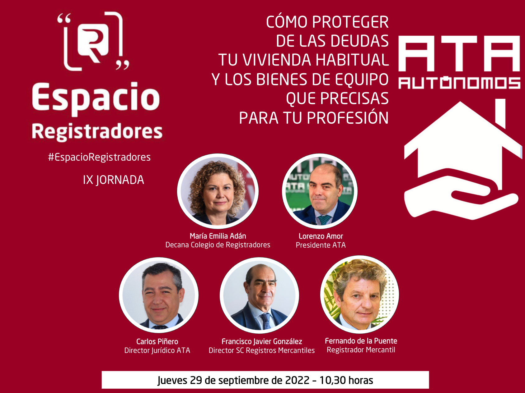 El Colegio de Registradores y La Federación Nacional de Asociaciones de Trabajadores Autónomos, ATA se unen en esta nueva jornada de Espacio Registradores para abordar y difundir los mecanismos de protección de la vivienda habitual frente a los acreedores, mediante un sencillo trámite en el Registro Mercantil.