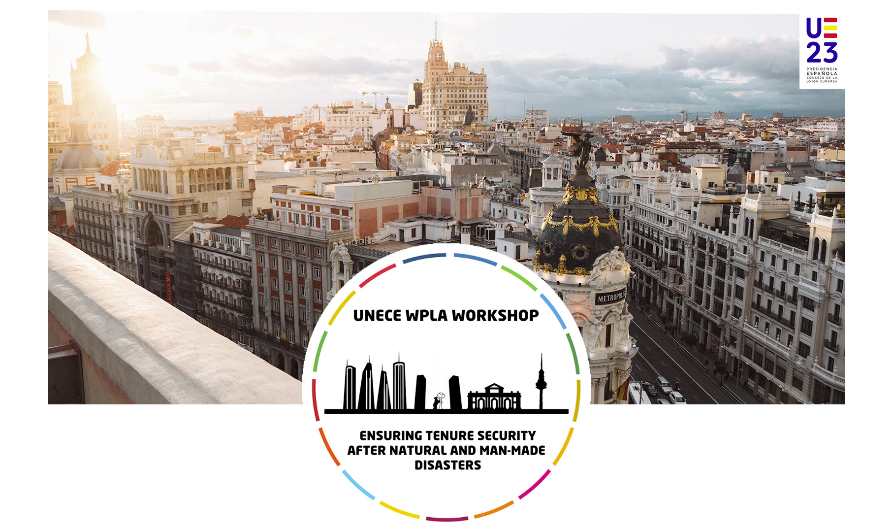 On 2-3 November 2023, the United Nations Economic Commission for Europe Working Party on Land Administration (UNECE WPLA) will meet in Madrid under the theme "Tenure Security: Ensuring tenure security during the reconstruction after natural and man-made disasters".