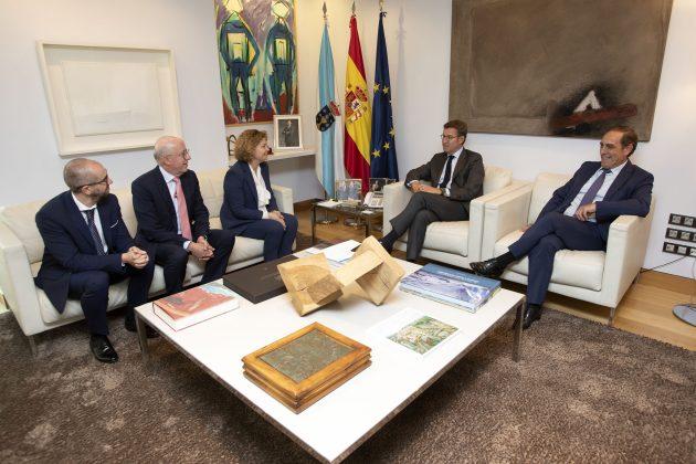 Tras la firma del convenio, la decana María Emilia Adán y una delegación del Decanato de Galicia del Colegio de Registradores, encabezada por el decano autonómico Hermes Rego, han realizado una visita institucional al presidente de la Xunta de Galicia, Alberto Nuñez Feijóo en la sede del gobierno gallego.